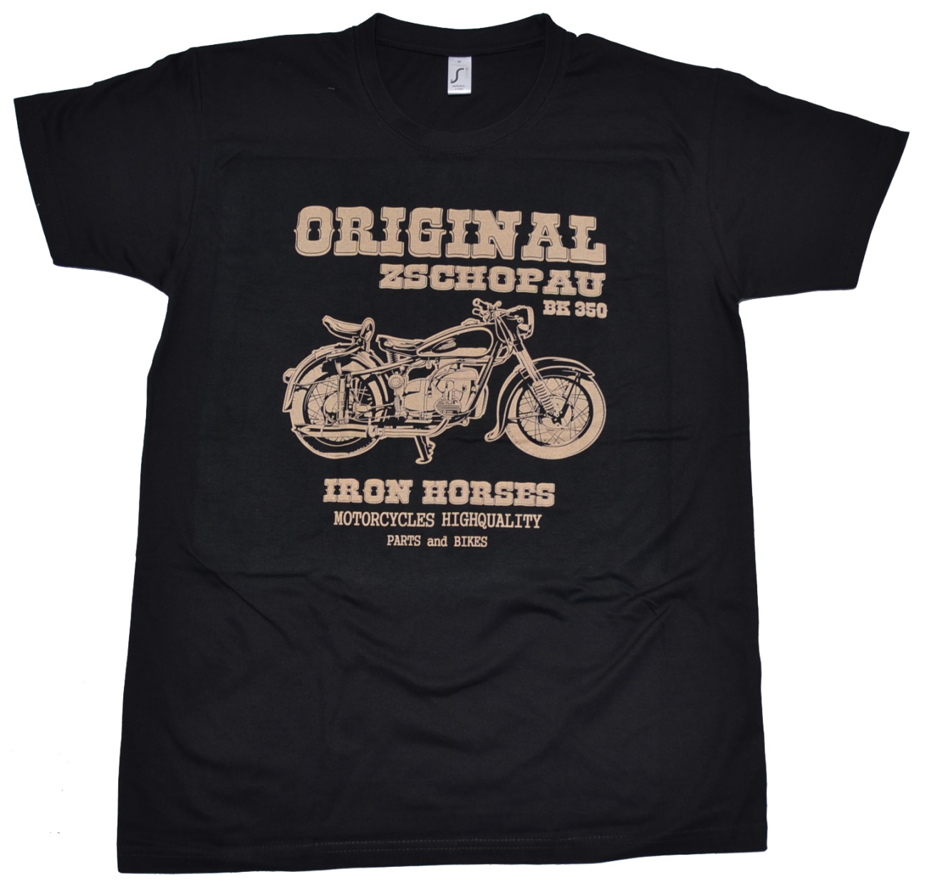T Shirt Original Zschopau BK 350, vorn großer Motiv-Druck: - Original Zschopau BK 350 Iron Horses Motorcycles Highquality Parts And Bikes -